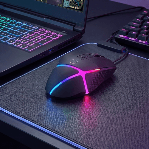Pe partea de design, Ulytrix G33 impresioneaza prin linii curate si o forma ergonomica ce sustine natural palma, reducand tensiunea si oboseala chiar si dupa multe ore de utilizare. Iluminarea subtila aduce un plus de stil fara a fi deranjanta, completand un estet modern si profesionist. Materialele folosite sunt rezistente si placute la atingere, contribuind la senzatia premium a produsului.